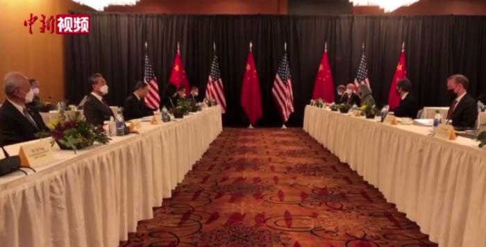 安克雷奇中美高层战略对话现场。(图片来源:中新视频截图)