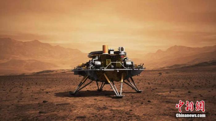 天问一号着陆火星效果图。 中国航天科技集团八院供图