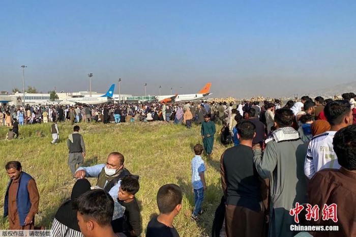当地时间8月16日,大量人群拥挤在阿富汗首都喀布尔的机场,试图离开。