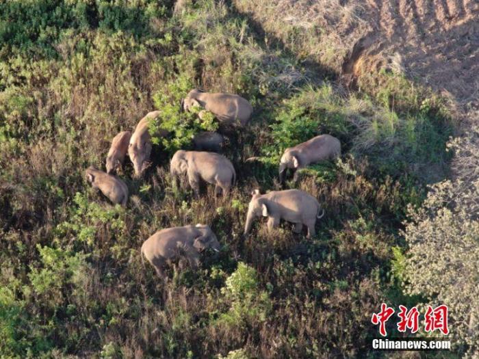2021年6月21日,云南迁移象群重新进入易门境内十街乡附近林地活动。 云南省森林消防总队 供图