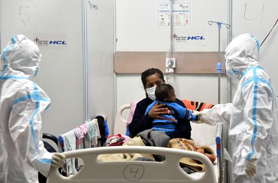 印度奥密克戎毒株感染者不断增多,新冠肺炎疫情又趋于严峻,首都新德里地区开始实施“周末居家令”。图为1月4日,新德里一家新冠肺炎患者护理中心的场景。 视觉中心供图