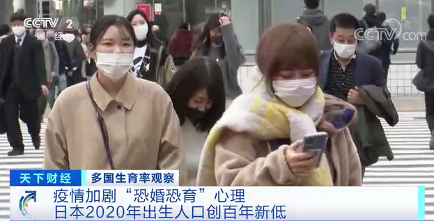 2020年日本新出生人口约为84万,是自1899年有统计以来的最低值。根据政府最新预测,2021年全年日本新出生人口可能为80.5万人,比2020年有所减少。在育龄女性人口减少的背景下,疫情又加重了民众的“恐婚恐育”心理。受疫情影响,日本25岁至35岁适婚群体在2020年的失业率与疫情前的2019年相比增加了1.6个百分点,不少民众推迟或取消了结婚计划,全日本2020年的婚姻登记数也比疫情前减少了12%。调查显示,生育成本高、经济负担重是日本民众不愿生育的首要原因。
