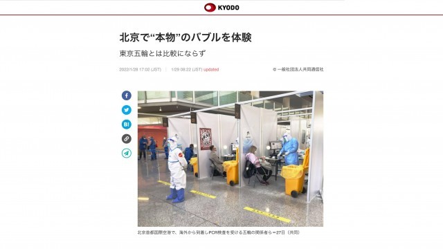一位来自日本共同社的记者经过亲测写下报道:“北京冬奥的防疫‘泡泡’才是真正的‘泡泡’!”