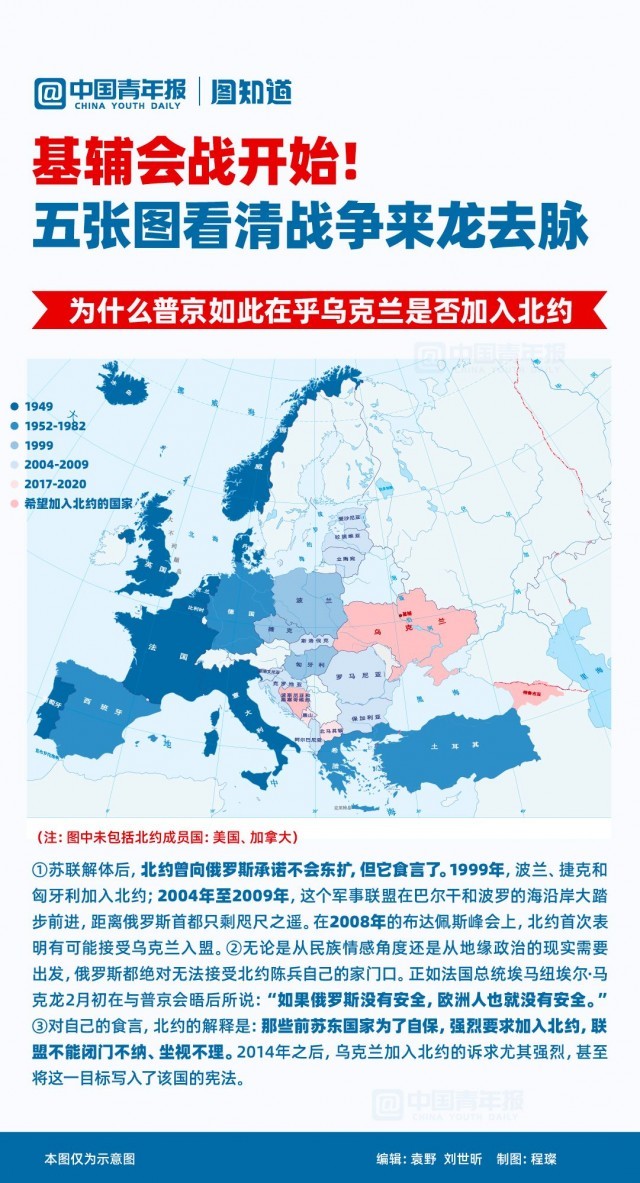 2月25日,俄军坦克已兵临基辅城下,俄乌双方激战正酣。俄乌局势为何急转直下?这对曾经的兄弟之邦,如何一步步走到兵戈相向的境地?北约又是如何一步步逼近俄罗斯家门口的?(中青报·中青网记者 袁野)