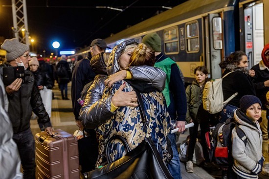 当地时间3月1日,撤出本国的乌克兰民众抵达匈牙利布达佩斯的火车站。 人民视觉供图