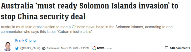 一位媒体人更是极端,他在澳大利亚新闻网撰文称,所罗门群岛“必须成为一条中国不得越过的红线”,他甚至叫嚣,为了阻止中所达成协议,澳大利亚必须“准备入侵所罗门群岛并推翻其政府”。这番言论将澳方一些人的双标刻画得淋漓尽致:自己发表赤裸裸侵犯他国主权的言论不是威胁,中国参与警务合作反而构成“威胁”。