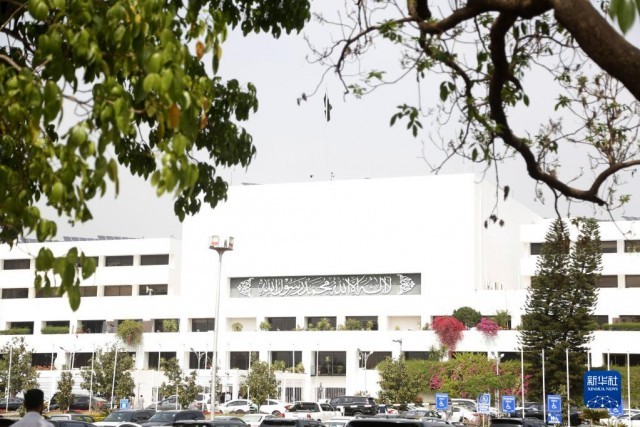 这是4月11日在巴基斯坦首都伊斯兰堡拍摄的国民议会大楼。新华社发(艾哈迈德·卡迈勒 摄)