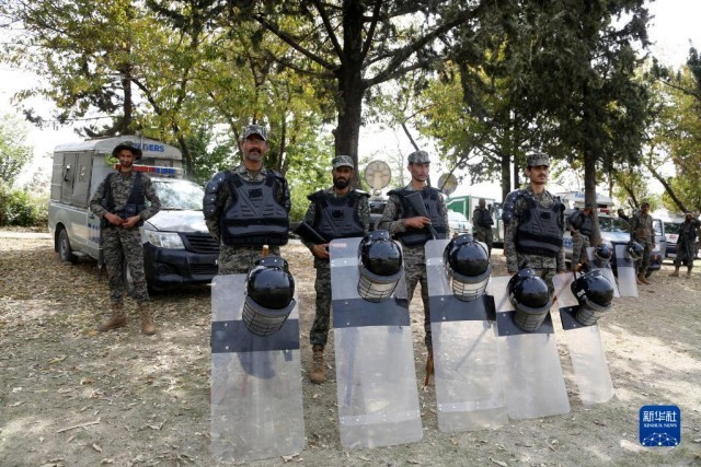 4月11日,安全人员在巴基斯坦首都伊斯兰堡的国民议会大楼外警戒。新华社发(艾哈迈德·卡迈勒 摄)