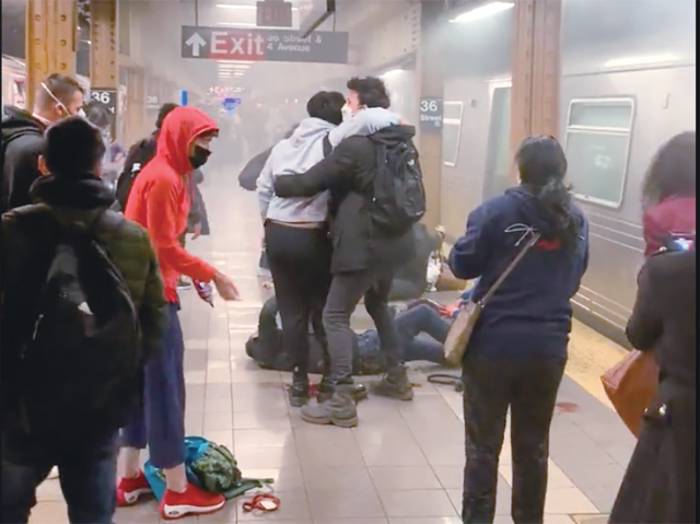 【环球时报驻美国特约记者 英辰 环球时报特约记者 刘皓然】浓烟四起、枪声大作,戴着面具的枪手突然在车厢内开枪射击,人们在站台上四散奔逃,伤者血流如注……当地时间12日早高峰时段,一列开往曼哈顿的纽约地铁列车出现“战区”一般场景。截至本报14日凌晨发稿,这起枪击案造成10人中弹,至少29人受伤,嫌犯仍然在逃。纽约警方公布了嫌犯的信息——现年62岁的非裔男子弗兰克·詹姆斯。美媒披露称,在社交平台上发布的视频中,这名男子经常发表仇恨言论,对刚上任100多天的纽约新市长颇为不满,称其控枪计划“注定失败”。“这是美国可耻枪支暴力传统的最新一例”,美国有线电视新闻网(CNN)12日如此评论。最新数据显示,今年已有5206名美国人死于非自杀枪击案,共发生136起大规模枪击事件。枪支暴力已经成为美国社会严重的人权痼疾。