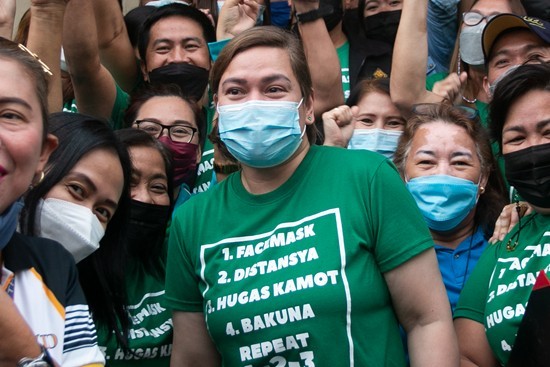 菲律宾当选副总统萨拉·杜特尔特,大选前与她担任市长的达沃市市政府工作人员在一起。视觉中国供图