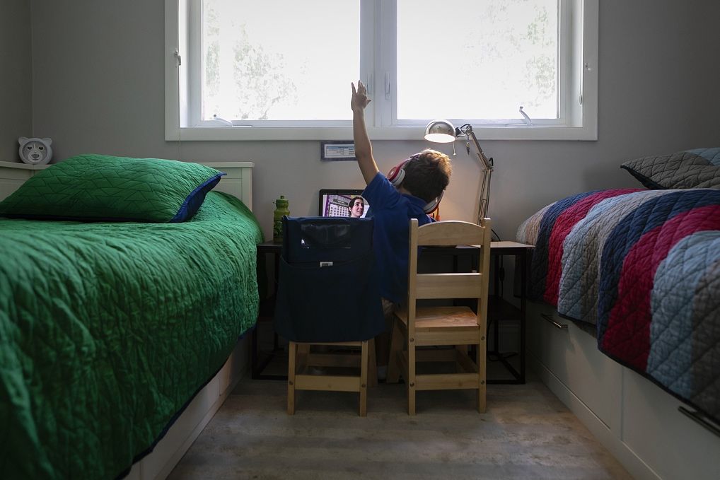 2020年9月3日,美国迈阿密,一个学生在家上网课。图片来源 视觉中国