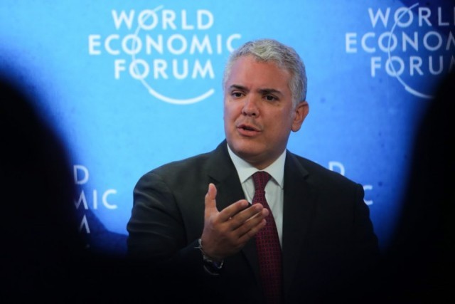 5月24日,在瑞士达沃斯,哥伦比亚总统杜克出席世界经济论坛2022年年会上的一个活动。新华社记者郑焕松摄