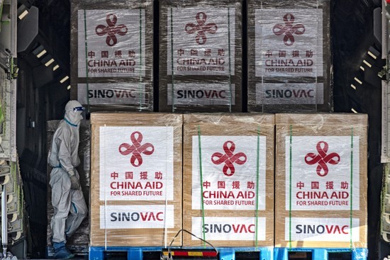 2021年2月28日,中国空军将第一批中国产新冠疫苗运抵菲律宾首都马尼拉的维拉莫空军基地。人民视觉供图