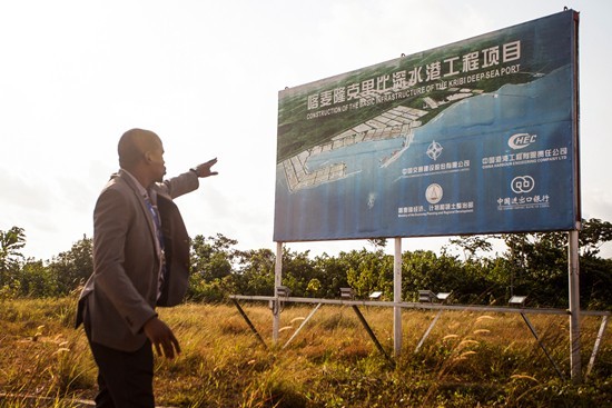 2018年8月1日,喀麦隆克里比港务局物流总监詹姆斯·亚瑟·埃东古介绍中国港湾工程公司参与建设的喀麦隆克里比深水港项目。视觉中国供图