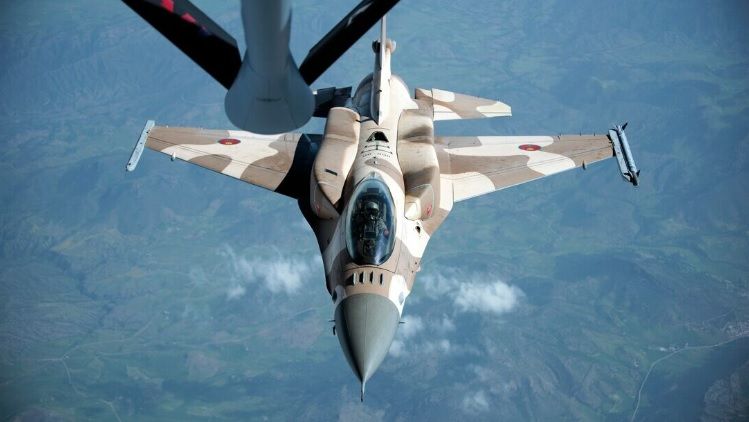 摩洛哥空军的F-16战机进行空中加油训练。 图片来源 美国空军