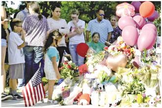图为5月28日,在美国得克萨斯州南部尤瓦尔迪市的城市广场,市民哀悼枪击事件遇害者。 新华社记者 吴晓凌 摄