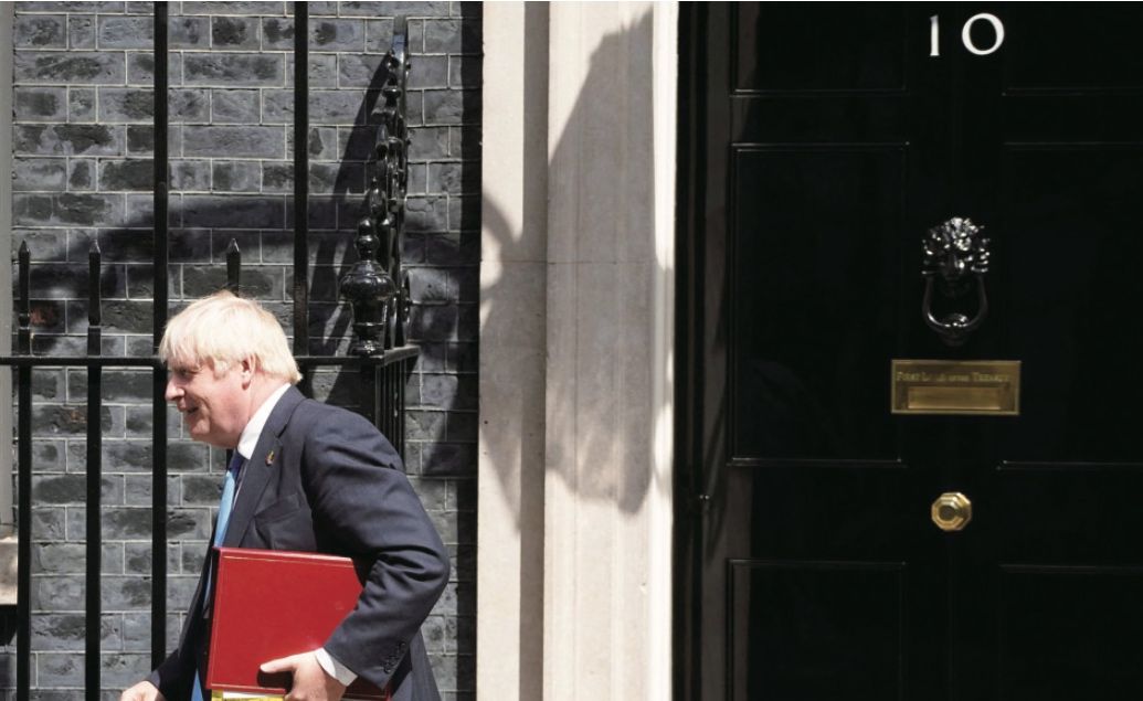 7月20日,英国伦敦,约翰逊离开唐宁街10号首相府,前往议会参加他任内最后一次“首相问答”。图片来源 视觉中国