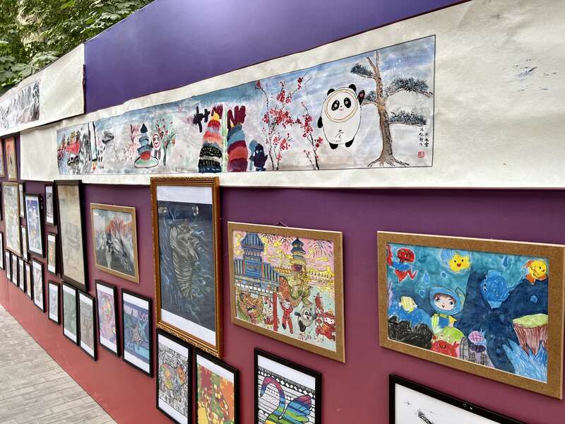 “上海合作组织国家青少年画展”亮相“上合之窗”。(主办方供图)