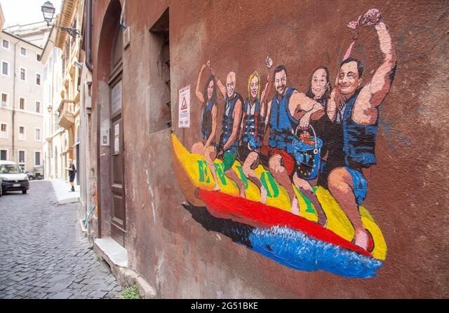 罗马街头艺术家Harry Greb的涂鸦,在移民问题上批评梅洛尼、萨尔维尼等意大利政客。