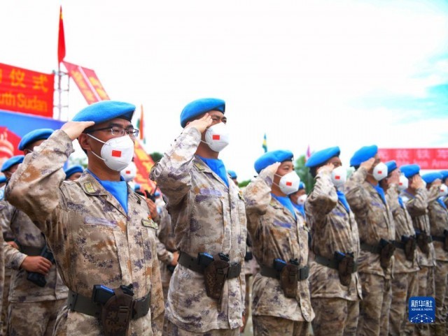 新华社内罗毕10月1日电(路金方 臧雅麒)朱巴消息:9月30日,联合国驻南苏丹特派团(联南苏团)超级营地举行授勋仪式,中国第八批赴南苏丹(朱巴)维和步兵营700名维和官兵被联合国授予“和平荣誉勋章”,以表彰他们在执行维和任务期间的卓越表现和为南苏丹和平事业作出的突出贡献。