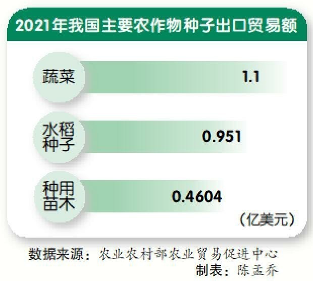 据中国种子贸易协会数据,2021年我国农作物种子出口额最大的是蔬菜种子,出口额为1.1亿美元,占出口总额46%。我国向80多个国家出口蔬菜种子,其中包括巴基斯坦、荷兰和韩国。