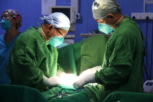 每周二和周四是中国医生的手术日。李俊升每个手术日平均要完成6台外科手术,最多的时候要做8台,经常下午两三点才能吃到午饭。对此,李俊升却很开心:“我一上手术台就满血复活,只有专心致志手术。”