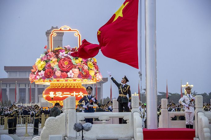 10月1日,升国旗仪式在北京天安门广场举行,庆祝中华人民共和国成立73周年。图片来源 视觉中国