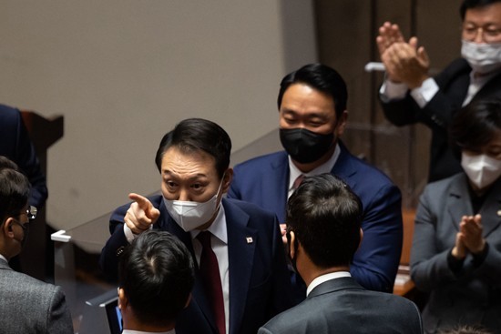 “为了克服严峻的经济和安全形势,朝野之间不能有任何隔阂。”韩国总统尹锡悦10月25日在国会发表施政演说时,呼吁朝野各党合作。但事实上,当时在场下聆听其演说的,并不包括韩国最大在野党共同民主党的169名国会议员。在野党议员集体缺席总统的施政演说,在韩国宪政史上尚属首次。韩国主流媒体将这一史无前例的行动与稍早前文在寅政府的国防部长官徐旭被逮捕事件相关联。
