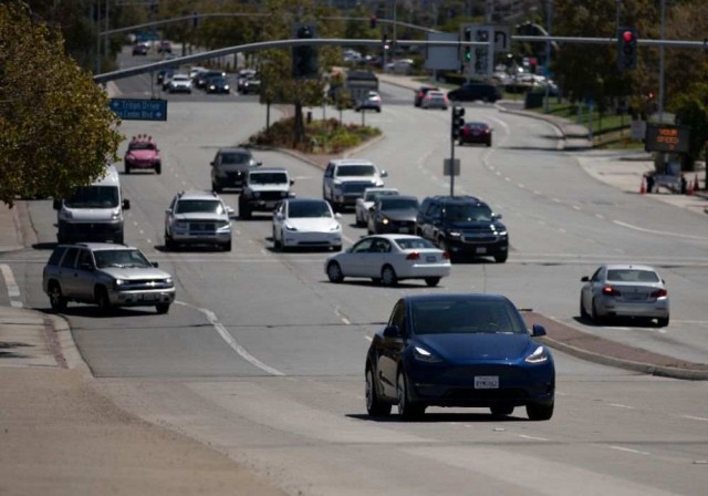 8月25日,车辆在美国加州福斯特城行驶。新华社发(李建国摄)