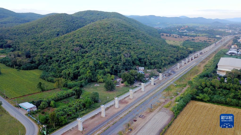 这是11月10日在泰国呵叻府拍摄的中泰铁路建设现场(无人机照片)。新华社记者王腾摄