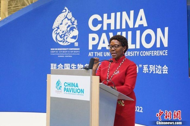 联合国《生物多样性公约》秘书处执行秘书伊丽莎白·穆雷玛在边会上作主旨发言。尹灵 摄