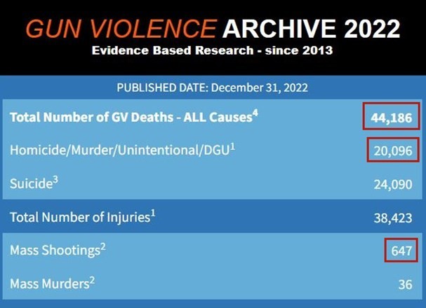 尤其令人触目惊心的是,造成除枪手外4人以上死伤的大规模枪击案在2022年共发生了647起。