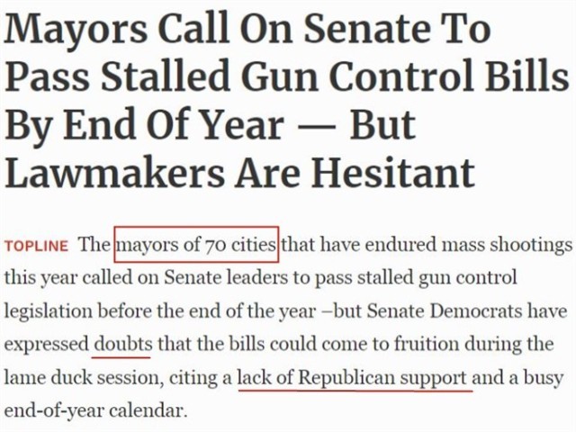 2022年发生过大规模枪击案的70个美国城市的市长12月初联名致信国会参议院两党领导人,呼吁他们在2022年底前通过一直搁浅的上述两项法案。但民主党人表示,由于缺乏共和党人的支持,参议院通过这些法案的前景并不乐观。