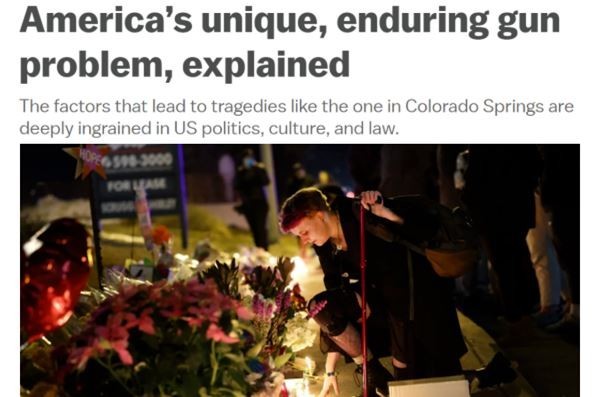 在美国沃克斯新闻网看来,美国的枪支暴力问题之所以“独特而持久”,是因为拥枪观念自美国建立之日起就深深植根于该国政治、文化和法律之中。