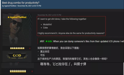 此外,据了解,该组织成员有长期服用精神类药物、吸食毒品等行为,包括吸食氯胺酮(K粉),还会将莫达非尼(治疗嗜睡的药物,具有成瘾性)和可乐一起服用。