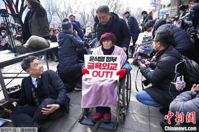 连日来,韩籍被强征劳工受害者及遗属、市民团体、在野党等代表多次集会抗议,高喊“声讨屈辱外交”口号。