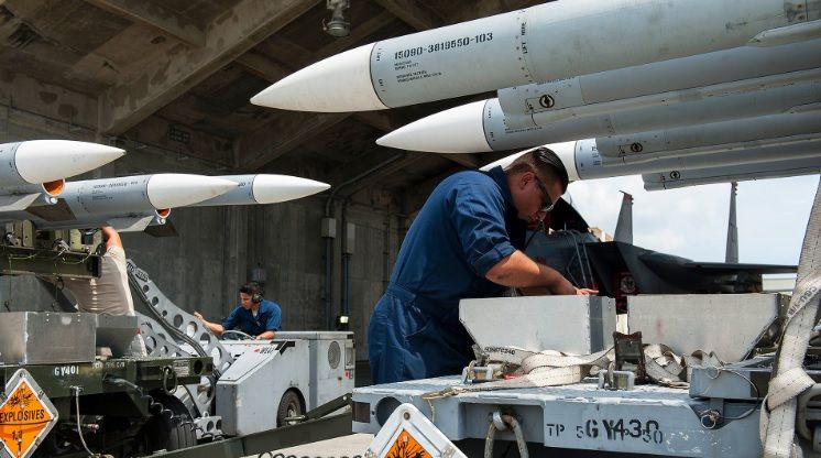 美军士兵搬运空对空导弹。 图片来源 美国空军