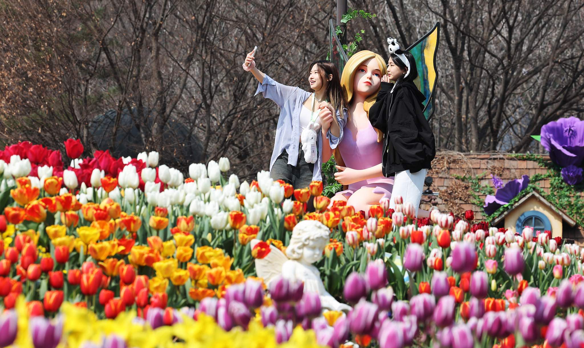 3月19日,韩国京畿道,市民观赏郁金香。