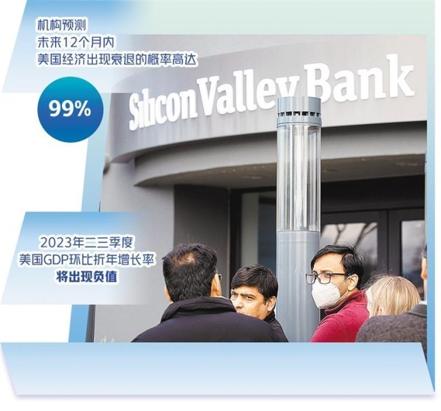 硅谷银行倒闭事件发生后,美国政府紧急采取处置措施并发声稳定市场信心,美国股市三大指数一度出现反弹,有的机构和分析人士据此认为美国经济可能会避免出现衰退。但据美国世界大型企业联合会的预测,2023年美国发生经济衰退的概率很高。3月5日,该机构发布报告称,基于他们的经济衰退预测模型和2023年1月数据,未来12个月内美国经济出现衰退的概率高达99%。值得注意的是,这一预测是在硅谷银行倒闭事件发生之前发布的,目前来看发生衰退的概率应该更大。在3月15日发布的报告中,该机构预测,2023年二三季度连续两个季度美国国内生产总值(GDP)环比折年增长率都将出现负值。根据经济合作发展组织(OECD)所发布的先行指数,美国和欧洲一些国家的先行指数在持续下滑,也预示美国和欧洲一些国家乃至整个欧盟有出现经济衰退的可能。
