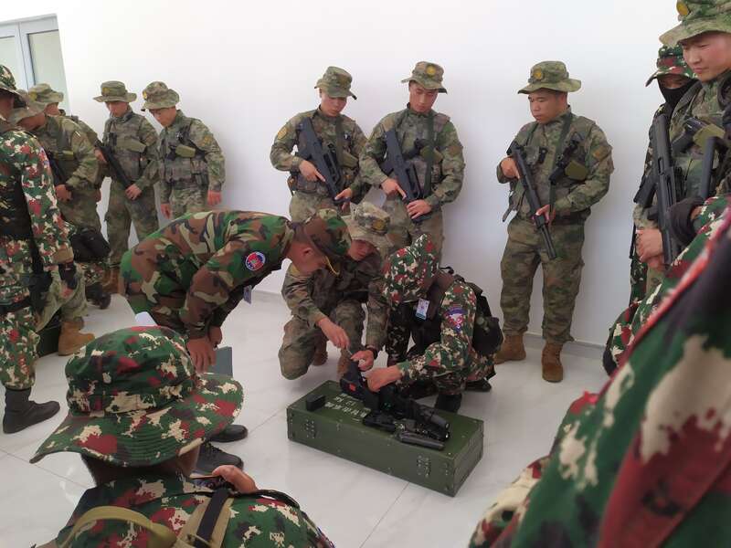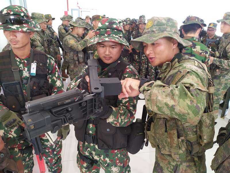 3月24日,柬埔寨王家军某训练基地,中柬“金龙-2023”联演参演官兵开展装备操作训练,熟悉了解对方武器装备性能。高毅/摄