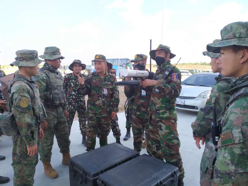 3月24日,柬埔寨王家军某训练基地,中柬“金龙-2023”联演的两军官兵开展装备操作训练。高毅/摄