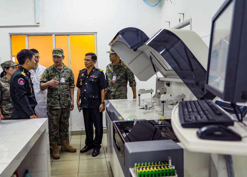 中国青年报客户端金边3月26日电(中青报·中青网驻柬埔寨记者 王岩)中柬“金龙-2023”联演23日开幕后,中柬两军参演官兵自24日起开始采取混合编组,在柬埔寨王家军某训练基地进行为期一周的联合适应性训练。3月25日,参加联演的南部战区机关、联勤保障部队医疗专家,与柬埔寨王家军总医院同行开展现场业务研讨交流,聚焦“重大活动安保和人道主义救援行动”联演主题,重点围绕伤员后送、紧急救治、诊断检验等内容,探索两军联合卫勤保障新模式。