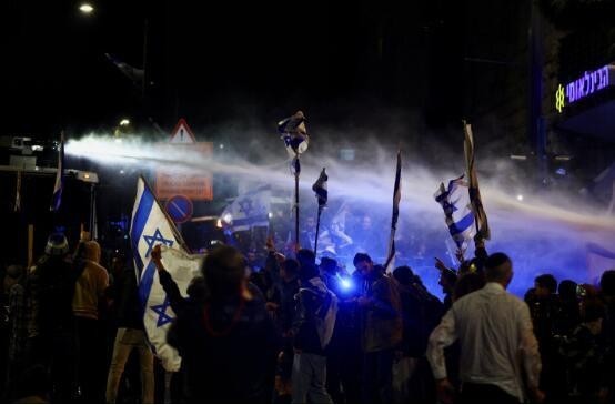 路透社报道称,内塔尼亚胡解雇防长的决定引发大规模抗议活动,以色列全国范围内数以万计的抗议者深夜走上街头,许多人挥舞着以色列国旗。一些抗议群众聚集在内塔尼亚胡在耶路撒冷的家门前,部分人一度冲破了警戒线。警察用水炮将他们从内塔尼亚胡的住所前逼退。