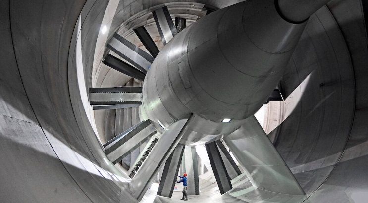 S1MA内部的气流由两个直径15米的驱动风扇产生,一个有10个叶片,另一个有12个叶片,单个叶片重900公斤。风扇由两个27吨重的涡轮驱动,涡轮直径4.9米。测试开始后,气流首先经过被称为“扩散器”的矩形框架,隧道直径逐渐增大;最后,气流被引入直径9米的测试单元。测试单元就像剧院里的舞台布景那样,可以事先准备好,然后沿着滑轨移动到风洞内部。考虑到准备时间可能长达数周,3个测试单元往往会轮番上阵。
