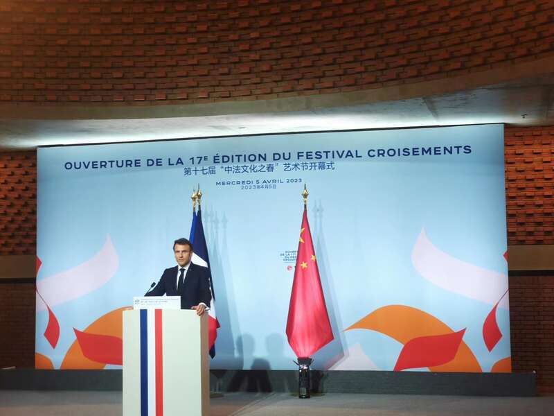 中国青年报客户端北京4月6日电(中青报·中青网见习记者 国新冠)4月5日晚,第十七届“中法文化之春”艺术节开幕式在北京红砖美术馆隆重举行,当日抵达北京开始对中国进行国事访问的法国总统马克龙亲临现场出席开幕式并为活动揭幕。