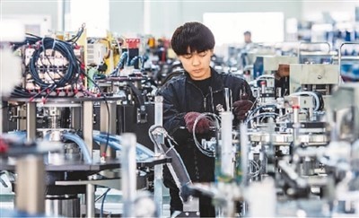3月18日,安徽省芜湖市湾沚区新芜经济开发区,芜湖裕东自动化科技有限公司工人在车间生产线上作业。该公司是一家集设计研发、生产制造、销售、售后服务体系于一体的专业食品包装高新技术企业,拥有130余项专利及知识产权。