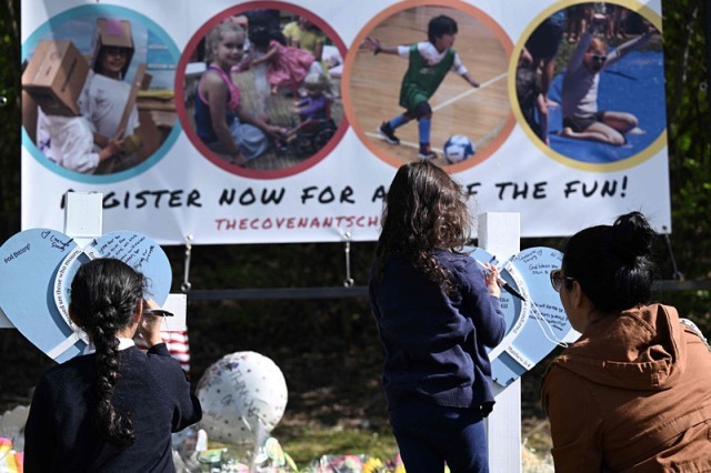 田纳西州民众纪念纳什维尔校园枪击案遇难儿童。(资料图)