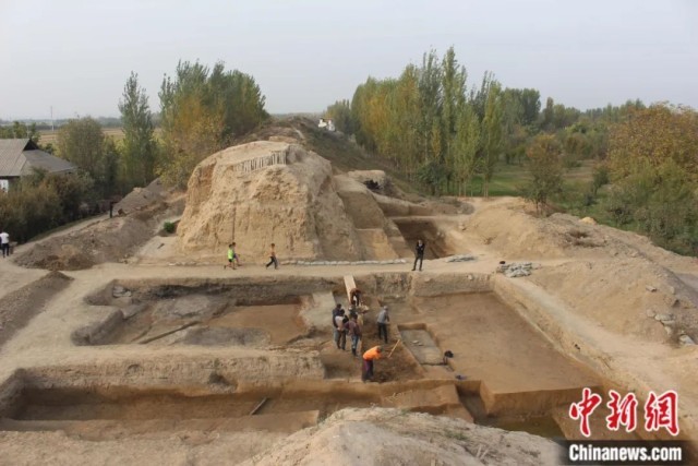 乌中联合考古队员对明铁佩古城遗址勘探发掘中。受访者供图