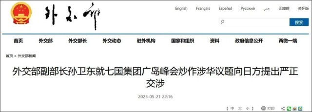 针对日本在G7峰会上操弄涉华议题,中国外交部副部长孙卫东21日召见日本驻华大使垂秀夫提出严正交涉。
