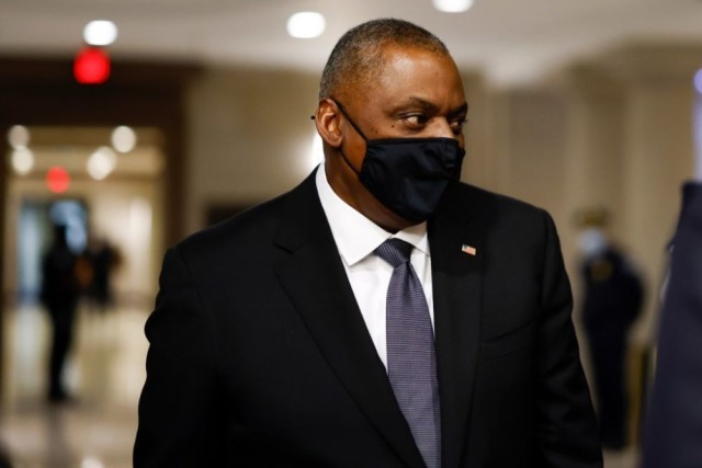 2022年2月2日,在美国首都华盛顿,美国国防部长奥斯汀准备在国会出席一场听证会。新华社发(沈霆摄)